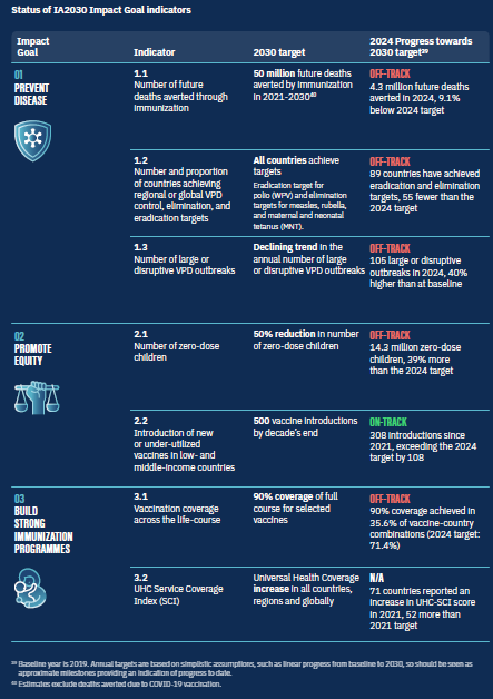在下一个五年,报告指出,IA2030的愿景、目标和战略优先事项仍应保留,但同时需优先推进能产生最大影响的三个影响目标:实现核心疫苗90%覆盖率、消除零剂次儿童、为麻疹、脊髓灰质炎及其他疫苗可预防疾病的暴发及流行做好准备并作出响应。